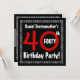 Este diseño con rayas y letras atrevidas es una manera divertida pero elegante de invitar a la gente a una celebración de fiestas de 40 años. Todo el texto es totalmente personalizable. Puede experimentar con diferentes tipos de papel haciendo clic en la pestaña "Opciones de invitación" en la esquina superior derecha. Le recomiendo el papel metálico de casco de hielo que le da a su invitación de cumpleaños un brillo festivo. ¡Encantador!