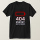 Una camiseta audaz y divertida con la leyenda "404 Energy Not Found" presenta un brillante icono rojo de baja batería con texto digital de mal gusto. Perfecto para jugadores, amantes del café, estudiantes y todo aquel que se quede sin energía. Limpio, llamativo y genial para el uso diario. Creación firmada por ZR21Diseños.