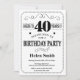 40.ª invitación de cumpleaños blanco y negro