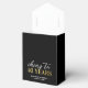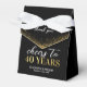 Adultos de 40 años gracias a las cajas de favores con un elegante fondo negro, un falso purpurina de oro, el dicho "vítores a 40 años", su nombre y la fecha del fiesta.