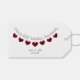 40 Aniversario del Boda etiqueta moderna de regalo blanco con el cordón rojo del corazón. Perfecto para parejas que celebran su aniversario de Boda Ruby después de cuarenta años de matrimonio. Los nombres del marido y la mujer y las fechas de boda que se muestran pueden personalizarse en la parte delantera de la etiqueta y el mensaje especial del destinatario también puede añadirse al reverso, utilizando el botón de personalización. En este moderno y hermoso diseño también se encuentran bolsas de regalo, tarjetas, papel de tejidos y carteles.