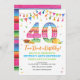 ¡Taco 'Sobre la celebración del 40 cumpleaños! Invite a los huéspedes a una fiesta 40 llena de diversión para celebrar a la chica o el chico de cumpleaños. Esta invitación digital cuenta con un papel de personalizado, el número 40 y acentos de decoración de fiesta colorida que inspirará decoraciones de la vida real para el fiesta.