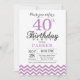 40.ª invitación de cumpleaños con violeta Chevron. Blanco y negro. Cumpleaños de adultos. Invitación de cumpleaños de hombre o mujer. Para una mayor personalización, haga clic en el botón "Personalizar" y utilice nuestra herramienta de diseño para modificar esta plantilla.