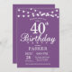 Invitación de cumpleaños número 40 con cadenas. Fondo Lilac De Lavanda Púrpura. Mujeres Dama Elegante Día Moderno. 13.º 15.º 16.º 18.º 20.21.30.40.50.60.70.80.90.100, cualquier edad. Para una mayor personalización, haga clic en el botón "Personalizar" y utilice nuestra herramienta de diseño para modificar esta plantilla.