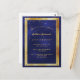 Una moderna y moderna tarjeta de invitación para la fiesta de cumpleaños número 40 para hombres, hombres y hombres. Un fondo azul oscuro, azul marino. El color azul es desigual. Con un marco de oro falso y un confetti dorado rociado, letras de colores dorados. Plantillas para la información de su fiesta. Atrás: diseño simple de postales.