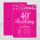 Invitación a la cena de cumpleaños número 40 con String Lights. Fondo rosado caliente. Mujeres Dama Elegante Día Moderno. 13.º 15.º 16.º 18.º 20.21.30.40.50.60.70.80.90.100, cualquier edad. Para una mayor personalización, haga clic en el botón "Personalizar" y utilice nuestra herramienta de diseño para modificar esta plantilla.