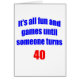 Es toda la diversión y juegos hasta que alguien dé vuelta a 40. 40.o diseño chistoso del cumpleaños para los 40 años que tiene un sentido del humor sobre su edad. Hace un gran 40.o regalo de cumpleaños.