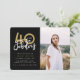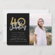 Celebra tu cumpleaños 40 con estilo con estas invitaciones para fotos fiestas en negro y oro de cuarenta y cuatro años. Diseño moderno con texto de guión y gráficos en negrita. Cambie el color al personalizar. Parte de una colección.