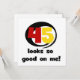 Si usted o alguien que usted conoce cumple 45 años, le encantarán nuestras camisetas de cumpleaños 45 Looks So Good On Me, botones, tarjetas, pegatinas, tazas, imanes y otras prendas de cumpleaños 45 con un diseño de texto negro, rojo y amarillo.