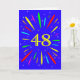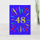 ¡Una explosiva tarjeta de cumpleaños número 48! Qué manera maravillosa de enviar saludos de cumpleaños. El número 48 en amarillo brillante con una explosión de colores brillantes y estrellas.