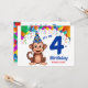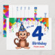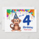 Diseño único - Invitación a la fiesta de cumpleaños con tema de mono con un mono lindo y el texto "Es mi cuarto cumpleaños" con un gran número 4. Personalizable con el nombre de su hijo. ¡Feliz cumpleaños!