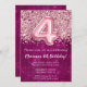 4.ª invitación de cumpleaños Purpurina rosa Girly