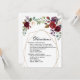 Esta tarjeta de 4.25x5.5 tamaño es perfecta para que cualquier pareja coloque dentro de sus invitaciones nupciales para que sus destinatarios tengan indicaciones para la ceremonia y hacia donde se realiza la recepción. Es totalmente personalizable tanto en color de FONDO como en colores de fuente. Simplemente utilice el sistema fácil de navegar para cambiar los colores del tipo de letra y el color de fondo a la opción que desee. *** Nota: Los colores de fuente actuales son los que se utilizan en el diseño floral de la invitación. Estos están equipados con sobres blancos estándar, pero se puede descartarlos ya que los clientes no los necesitarán. Tenemos una línea entera dedicada a este diseño aquí en el zazzle store bajo la pestaña * Diseño Colecciones del menú para incluir invitaciones (5x7), Etiquetas de retorno, Etiquetas de correo, Sellos para sobres, estampillas de rehenes, Tartas de copas, Envolturas de botellas de agua, Hershey's 1.55 oz. Envolturas para barra grande, Pegatinas en miniatura de Hershey, Envolturas para bolsitas de palomitas de microondas, Tarjetas para lugares escribibles, Toppers para bolsitas de goody, Tarjetas de agradecimiento FLAT (4x5), Tarjetas de agradecimiento FOLDED (4x5), Etiquetas de favoritos, Tarjetas de menú, libros de papel, Tapas de ligas, Tarjeta de bingo Marcadores, Hojas de llamadas con tarjeta de bingo, tarjetas de consejo para escritura (4x5), etc.