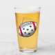 Vidrio de fútbol para un fiesta del 4 de julio con ilustracion de dos balones de fútbol.