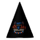 Estos gorras fiestas muestran las palabras "Feliz 4 de julio" más cinco estrellas con ícono de fuegos artificiales a cada lado y banner debajo mostrando un estilo tipográfico rojo, blanco y azul en este tema del 4 de julio, Día de la Independencia. Todos los gorras de papel tienen una cuerda elástica adjunta impresa en colores vivos completos hechos en Estados Unidos tiene un mínimo de 12 pedidos.