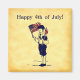 Un imán personalizado con letras retro que leen Feliz 4 de julio y un dibujo vintage de un chico patriótico con fuegos artificiales de vacaciones rojas y una vieja bandera de Estados Unidos en un falso pergamino de fondo.