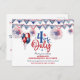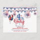 4 de julio Caligrafía moderna Cartel de invitación del partido Independencia para celebrar la libertad con sus amigos y familia. El diseño incluye petardos, globos, banderas de racimo, todo con el tema del rojo, el azul y el blanco. El texto es fácilmente personalizable.
