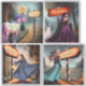 Cuatro pegatinas de cuento de hadas. Caballo mágico y tres princesas. Cada pegatina puede ser personalizado con el nombre del niño u otro mensaje. Diseño de acuarelas. Vestir tu mundo con pegatinas mágicos de vinilo azul y púrpura. ¡Añade un toque de fantasía donde sea que vayas! Ideal para taquillas, cuadernos, tablets, etc.