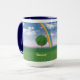 4 temporadas con texto gran combo café mugCafé tazón con cuatro temporadas de arte digital único.El mismo árbol representado a lo largo de las cuatro temporadas en un diseño semirealista y más formal por el ilustrador Paul Morton.