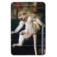 Nevera imán con retrato de un mono sentado en una cerca al sol con el lema "A veces me siento y pienso, y a veces me siento".