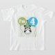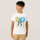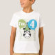¡Los asistentes del cumpleaños del tema del parque zoológico amarán nuestra 4ta camiseta del cumpleaños de la cebra que ofrece una cebra que lleva un gorra del fiesta, porciones de lunares verdes y azules, y los globos azules y verdes que me leen "son 4"!