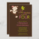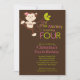 Comience a su cuarta fiesta de cumpleaños de la derecha con nuestras invitaciones adorables de la fiesta de cumpleaños de los niños del mono de la niña. ¡Perfeccione la invitación para usted 4ta celebración de la fiesta de cumpleaños! Nuestras pequeñas invitaciones dulces del mono ofrecen un mono lindo de la niña que balancea en una rama de árbol y se fijan en un fondo marrón elegante. Nuestra invitación de la fiesta de cumpleaños del chica del mono ofrece un pequeño mono único con un gorra del fiesta y hincha el fondo. Visite nuestra tienda para hacer juego le agradecen las tarjetas de nota, pegatinas del cumpleaños, gracias los pegatinas y los sellos. © Tatti pequeno