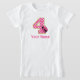 Deje a su pequeña señora mostrar apagado su cuarto cumpleaños en una manera de la diversión con esta 4ta camisa rosada y verde personalizada del cumpleaños.