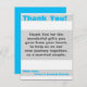 Esta adorable tarjeta 4x5 FLAT de agradecimiento es perfecta para agradecer a sus invitados los regalos que trajeron, o incluso para su compañía en su evento. Ideal para una ducha o una fiesta de cumpleaños. Estos son completamente personalizables y el poema puede ser eliminado completamente simplemente borrando el texto para dejar espacio para un mensaje personal escrito a mano, o puedes personalizar con tu propio poema o texto. Estos se imprimen en papel liso, vibrante y mate de 110 libras de peso. Contiene un 50% de contenido reciclado. Perfecto para sus invitaciones más formales, tarjetas de agradecimiento y invitaciones de eventos. Estos vienen con sobres blancos estándar. Tenemos una línea entera dedicada a este diseño aquí en el zazzle store bajo la pestaña * Diseño Colecciones del menú para incluir invitaciones (5x7), Etiquetas de retorno, Etiquetas de correo, Sellos para sobres, estampillas de rehenes, Tartas de copas, Envolturas de botellas de agua, Hershey's 1.55 oz. Envolturas para barra grande, Pegatinas en miniatura de Hershey, Envolturas para bolsitas de palomitas de microondas, Tarjetas para lugares escribibles, Toppers para bolsitas de goody, Tarjetas de agradecimiento FLAT (4x5), Tarjetas de agradecimiento FOLDED (4x5), Etiquetas de favoritos, Tarjetas de menú, libros de papel, Tapas de ligas, Tarjeta de bingo Marcadores, Hojas de llamadas con tarjeta de bingo, tarjetas de consejo para escritura (4x5), etc.