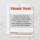 Esta adorable tarjeta 4x5 FLAT de agradecimiento es perfecta para agradecer a sus invitados los regalos que trajeron, o incluso para su compañía en su evento. Ideal para una ducha o una fiesta de cumpleaños. Estos son completamente personalizables y el poema puede ser eliminado completamente simplemente borrando el texto para dejar espacio para un mensaje personal escrito a mano, o puedes personalizar con tu propio poema o texto. Estos se imprimen en papel liso, vibrante y mate de 110 libras de peso. Contiene un 50% de contenido reciclado. Perfecto para sus invitaciones más formales, tarjetas de agradecimiento y invitaciones de eventos. Estos vienen con sobres blancos estándar. Tenemos una línea entera dedicada a este diseño aquí en el zazzle store bajo la pestaña * Diseño Colecciones del menú para incluir invitaciones (5x7), Etiquetas de retorno, Etiquetas de correo, Sellos para sobres, estampillas de rehenes, Tartas de copas, Envolturas de botellas de agua, Hershey's 1.55 oz. Envolturas para barra grande, Pegatinas en miniatura de Hershey, Envolturas para bolsitas de palomitas de microondas, Tarjetas para lugares escribibles, Toppers para bolsitas de goody, Tarjetas de agradecimiento FLAT (4x5), Tarjetas de agradecimiento FOLDED (4x5), Etiquetas de favoritos, Tarjetas de menú, libros de papel, Tapas de ligas, Tarjeta de bingo Marcadores, Hojas de llamadas con tarjeta de bingo, tarjetas de consejo para escritura (4x5), etc.