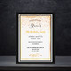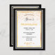 Una elegante tarjeta de invitación para una fiesta de cumpleaños por 50 años para hombres y mujeres. Plantillas para su información. Marcos de oro negros y falsos y lluvia dorada de confeti. Elegante fondo blanco, letras negras y doradas. El nombre está escrito con una escritura de estilo con letras a mano moderna.