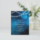 Una invitación para una fiesta de cumpleaños número 50 para él y ella. Una noche azul y noche de medianoche oscura con luna llena, nubes dramáticas oscuras y cuerdas brillantes de luz. Plantillas para un nombre, edad 50, lugar y detalles del fiesta. Fondo blanco. Sugerencia: Si no desea que se vea como una postal, haga clic en personalizar, vaya a la parte posterior y quite el separador y el sello postal.