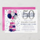 Esta fabulosa invitación de cumpleaños número 50 con un pastel rosa y plateado de dos capas con rosas azules y globos rosa, azul marino y plateado, el número 50 en confeti plateado y azul brillante sería perfecto para celebrar a tu ser querido que cumple 50 años. Es tradicional y clásico, fresco, moderno y contemporáneo. La parte trasera es un Relieve metalizado rosa de coordinación.