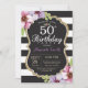 50.ª invitación a las mujeres por el cumpleaños. Invitación a la fiesta de cumpleaños de oro y negro. Brillantina dorada. Flor Floral color morado. Rayas blancas y negras. Pizarra. Digital Imprimible. Para una mayor personalización, haga clic en el botón "Personalizar" y utilice nuestra herramienta de diseño para modificar esta plantilla.
