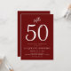 Prepárate para decir "¡Hola 50!" con estilo con esta hermosa invitación roja y blanca. Perfecto para su próxima celebración de 50 años, esta invitación presenta un diseño sofisticado que cautivará a sus invitados. Desde el clásico esquema de color rojo y blanco hasta el tipo de letra guionado, esta invitación le dará a su evento un aspecto elegante y elegante. ¡Envíe esta invitación para empezar a planear la fiesta de cumpleaños perfecta!
