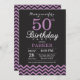 Invitación de cumpleaños 50 con Chevron negro y púrpura. Pizarra. Cumpleaños de adultos. Invitación de cumpleaños de hombre o mujer. Para una mayor personalización, haga clic en el botón "Personalizar" y utilice nuestra herramienta de diseño para modificar esta plantilla.
