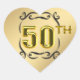 50 en oro elegante 3d números de apariencia gráfica en un fondo dorado metálico para coincidir. Se muestra el popular pegatina de forma cardíaca. Este sello pegatina se ha añadido a un diseño de borde elegante de estilo vintage estilo negro. Hay otras formas y tamaños disponibles. De aspecto rico, pero asequible. Haz grandes favores y sellos para sobres para un aniversario dorado de cincuenta bodas, cumpleaños o reunión.