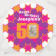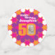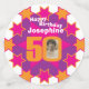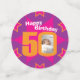 50 años de fiesta estrellas de papel rosa confetti. Ideal para añadir un toque personal a una sorpresa de cumpleaños número cincuenta. Personaliza con tu propia foto de chicas de cumpleaños en el 0 de 50 y personaliza con tu elección de nombre. Diseño de Sarah Trett para www.mylittleeden.com en zazzle.