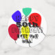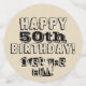 Sobre el 50 aniversario de la colina. Personalizar para cualquier edad para hombres o mujeres. Texto divertido en negro sobre fondo marrón claro. El tamaño medio tiene globos voladores en rojo, amarillo, naranja, verde, azul sobre un fondo blanco en la parte delantera y trasera. Espolvorea un confetti en mesas fiestas para divertirse. Diseño original de arte gráfico por TamiraZDesigns.