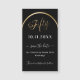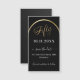 Un magnético Guardar la tarjeta de fecha para una fiesta de cumpleaños número 50. Un fondo negro, decorado con un falso arco dorado. Personalice y agregue una fecha y su nombre. El texto: Fifty y Save the Date está escrito con un gran guión de moda a mano.
