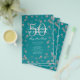 Elegante diseño "Programa de fiesta de cumpleaños" con Purpurina Confetti en plata y Verde azulado con texto personalizado.