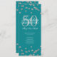 Elegante diseño "Programa de fiesta de cumpleaños" con Purpurina Confetti en plata y Verde azulado con texto personalizado.