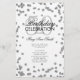 Elegante diseño "Programa de fiesta de cumpleaños" con Purpurina Confetti en plata con texto personalizado.