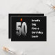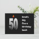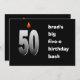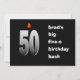 Esta buena invitación es perfecta para una fiesta de 50 años o un 50 aniversario o cualquier cosa que cumpla 50 años con un fiesta involucrado. "50" es grande y en un fondo negro con una llama encima. "El Big Five-Oh Birthday Bash de Brad" está al frente y todas las líneas pueden ser cambiadas por ti. Lo mismo ocurre con la parte trasera de la invitación. Más grandes invitaciones a venir incluyendo 40 y 30.