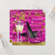 Caliente Rosa 50 y Fabulosa Invitación de cumpleaños. Telas purpurinas divertidas y diseño de champán burbujeante.