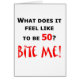¿Como qué siente ser 50? ¡Muérdame! Diseño chistoso para los 50 años que no es feliz sobre el torneado de 50 y una señal de peligro para otras. Hace un gran 50.o regalo de cumpleaños.