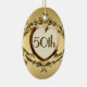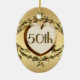 50.o aniversario hermoso y elegante u ornamento de cerámica de la apariencia vintage de la 50.a forma oval popular del cumpleaños en oro. En el centro es un corazón del oro con "50.o" en una escritura a juego elegante del oro. La hoja de oro realista confina (diseño impreso, oro no real) el top y la parte inferior de este ornamento especial para esa ocasión especial. Hace un favor precioso del recuerdo del fiesta para sus huéspedes así como los quincuagésimos pares o el 50.o hombre o las mujeres del cumpleaños.