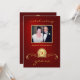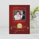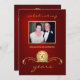 50.as invitaciones personalizadas de la fiesta de aniversario -- Acentos elegantes del oro del vintage en fondo rojo de rubíes real intrépido con el marco de la foto y el monograma antiguo clásico. Añada su propia foto y modifique el nombre, la fecha, y los detalles para requisitos particulares para la ocasión feliz. Perfeccione para las fotos del contemporáneo o del vintage. Cambie fácilmente el texto y los números para otras celebraciones del jalón, 40.as, 45.as, 60.as, 65.as, sobres a juego del etc., franqueo y gracias carda disponible. ** NOTA: Clasificado para las tarjetas de la invitación 5x7. Otros tamaños y estilos disponibles en galería.