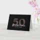 Personalizado 50 y fabuloso con tarjeta de cumpleaños de campo de nombre. En blanco dentro. Negro con texto gris y blanco.