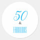 50 y fabulosos pegatinas de cumpleaños con texto azul cielo y negro. Colóquelos en las invitaciones o sobres de su grupo. Puede personalizar editando el texto y elegir cambiar el color o el tipo de letra.