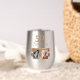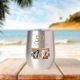 50 y Fabulous Gold Purpurina 2 Photo 50th Birthday Thermal Wine Tumbler. El diseño tiene detalles falsos de purpurina dorado y 2 fotos de personalizados. Añade tus fotos - puedes usar una foto antigua y una nueva.